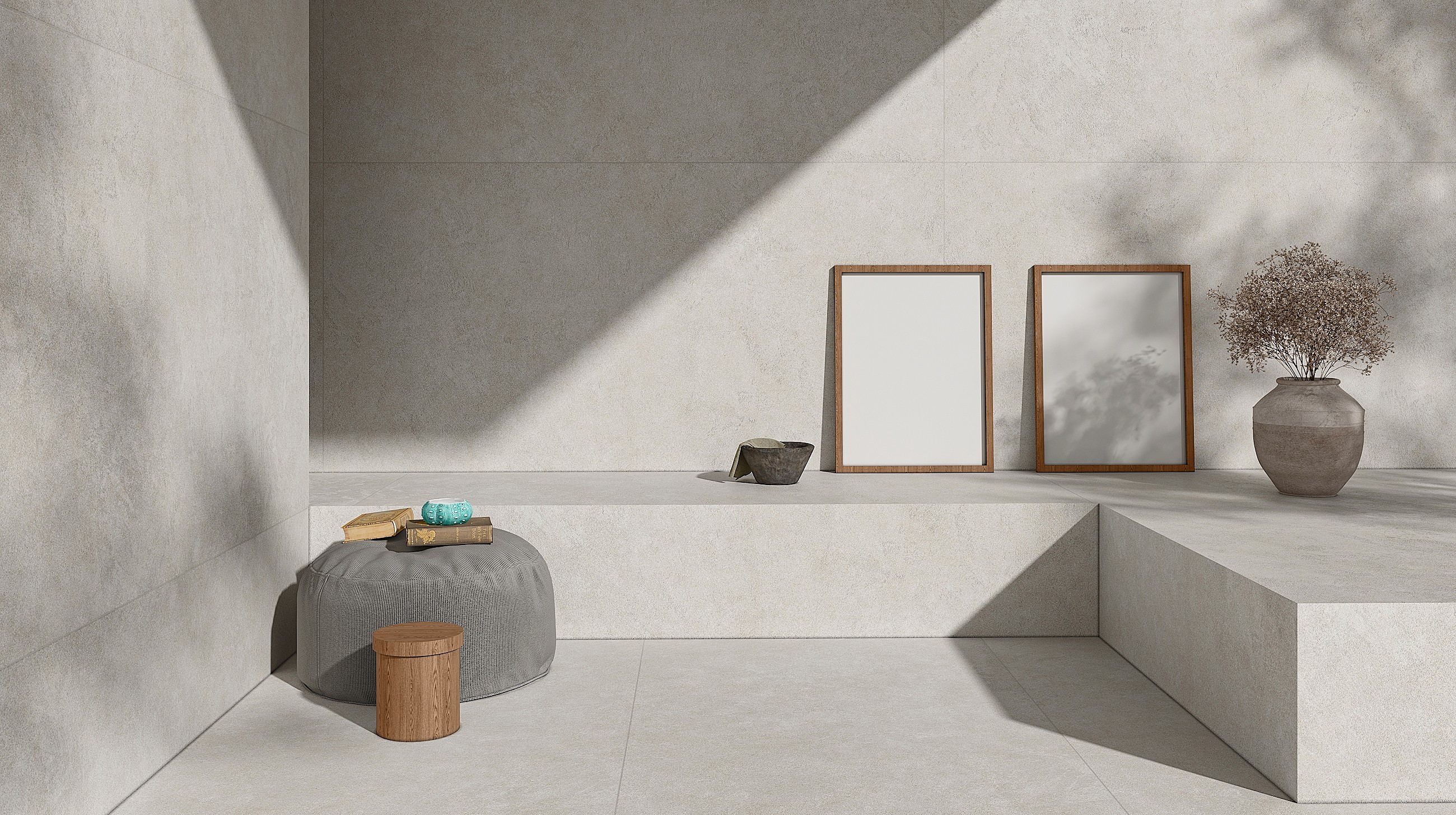 Drawing inspiration from the quiet elegance of sun- bleached concrete and natural stone, Neo Bianco reflects a soft ivory-beige hue with delicate mineral textures. The surface evokes the feel of timeworn urban walls — minimal yet deeply expressive. It pays tribute to concrete’s timeless legacy, from the grandeur of Roman architecture to today’s serene, modern interiors.
