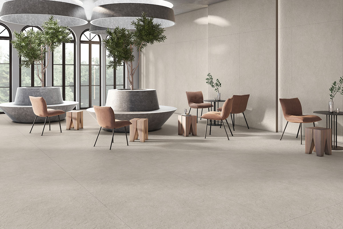 Neo Chiro takes inspiration from cast concrete surfaces, translating their quiet strength into a refined ceramic expression. The design features a balanced interplay of soft granularity and tonal depth—giving the surface a lived-in, architectural feel. Its warm taupe base is gently textured with subtle variations that create visual movement while remaining understated. Ideal for spaces seeking a raw, contemporary foundation with timeless elegance.