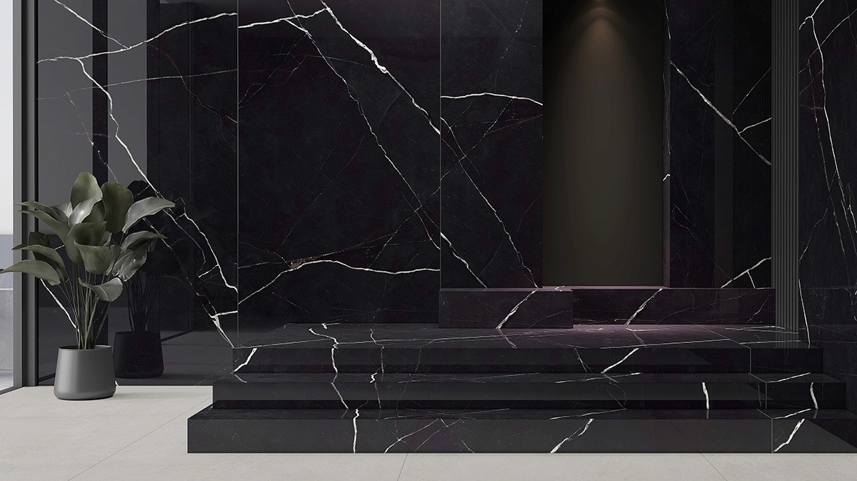 Scuro Marquina features a striking deep black base dramatically contrasted with sharp, prominent white veins. This tile captures the iconic and luxurious appeal of the marble, offering a powerful statement of modern elegance. It's decisive color scheme and impactful veining create a sophisticated and unforgettable aesthetic.