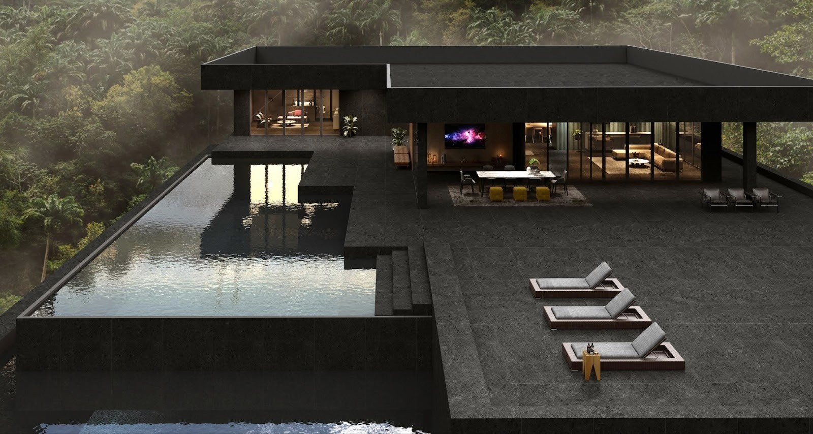 Omogenea anchors space through presence rather than noise. Its texture feels raw yet resolved, delivering visual impact while maintaining architectural order. It is not just an imitation of volcanic stone, but a study of how force becomes form.